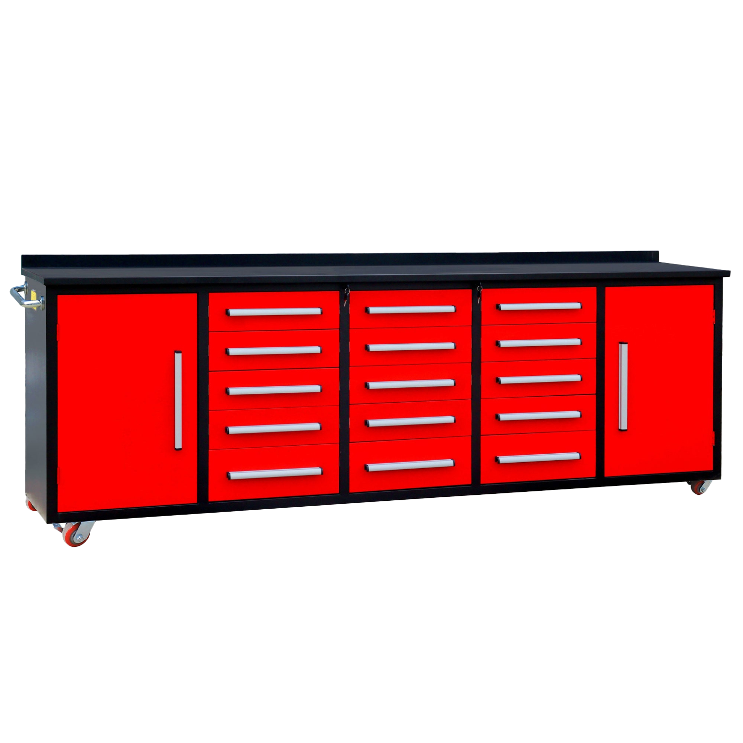 10ft storage workbench with 15 drawers offers ample organized storage for tools and supplies.