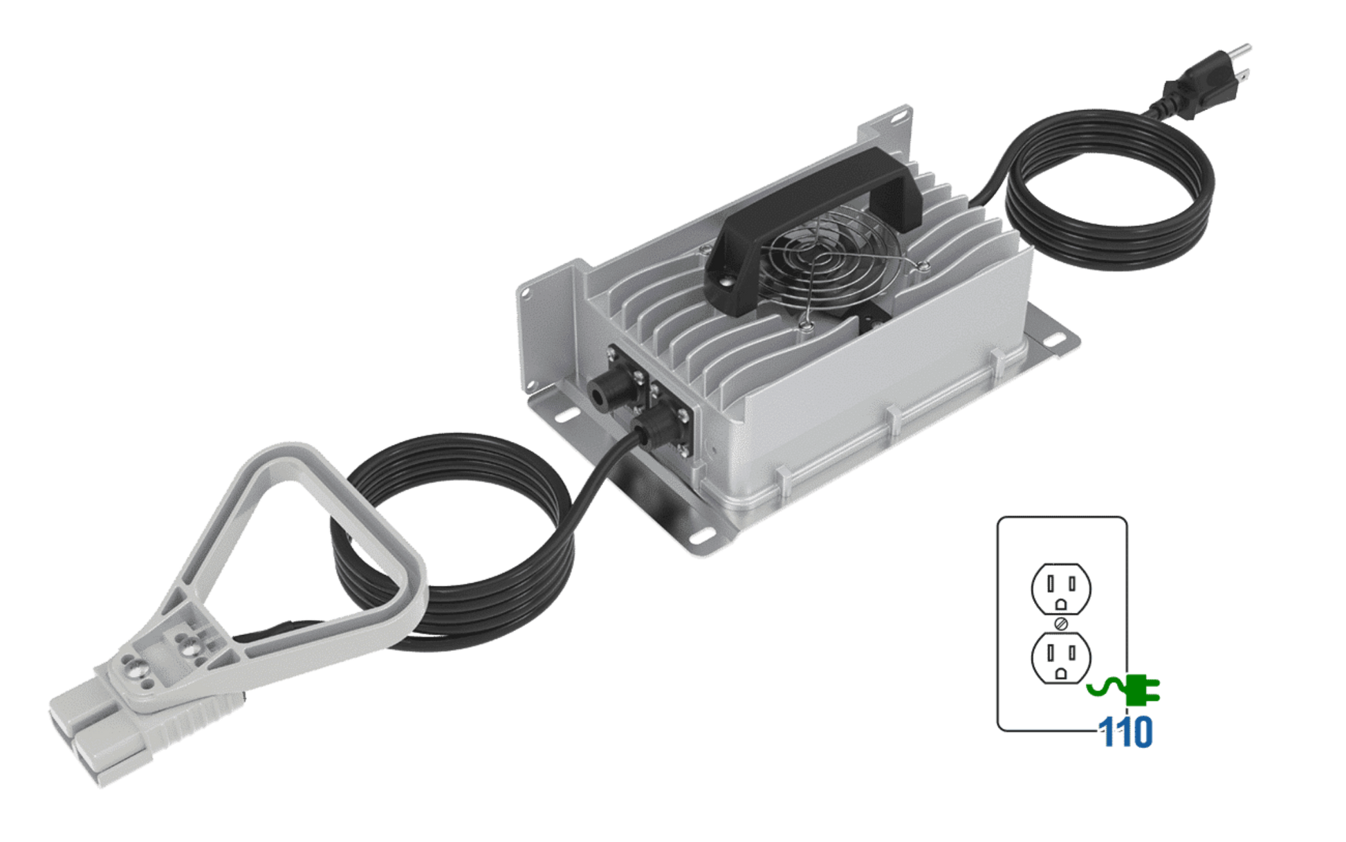 Make sure you stay powered through long work days and long winters with this heavy-duty 24V charger from BigBattery. This charger’s compact, portable form factor, and IP65 weatherproof protection rating will ensure you always have power when and where you need it. Plus, it is equipped with an easy Anderson-style connection for your battery, a 110VAC cable for plugging directly into any standard wall outlet, and an output current of 30A. Now you can plug in, charge up, and get back to business in no time!