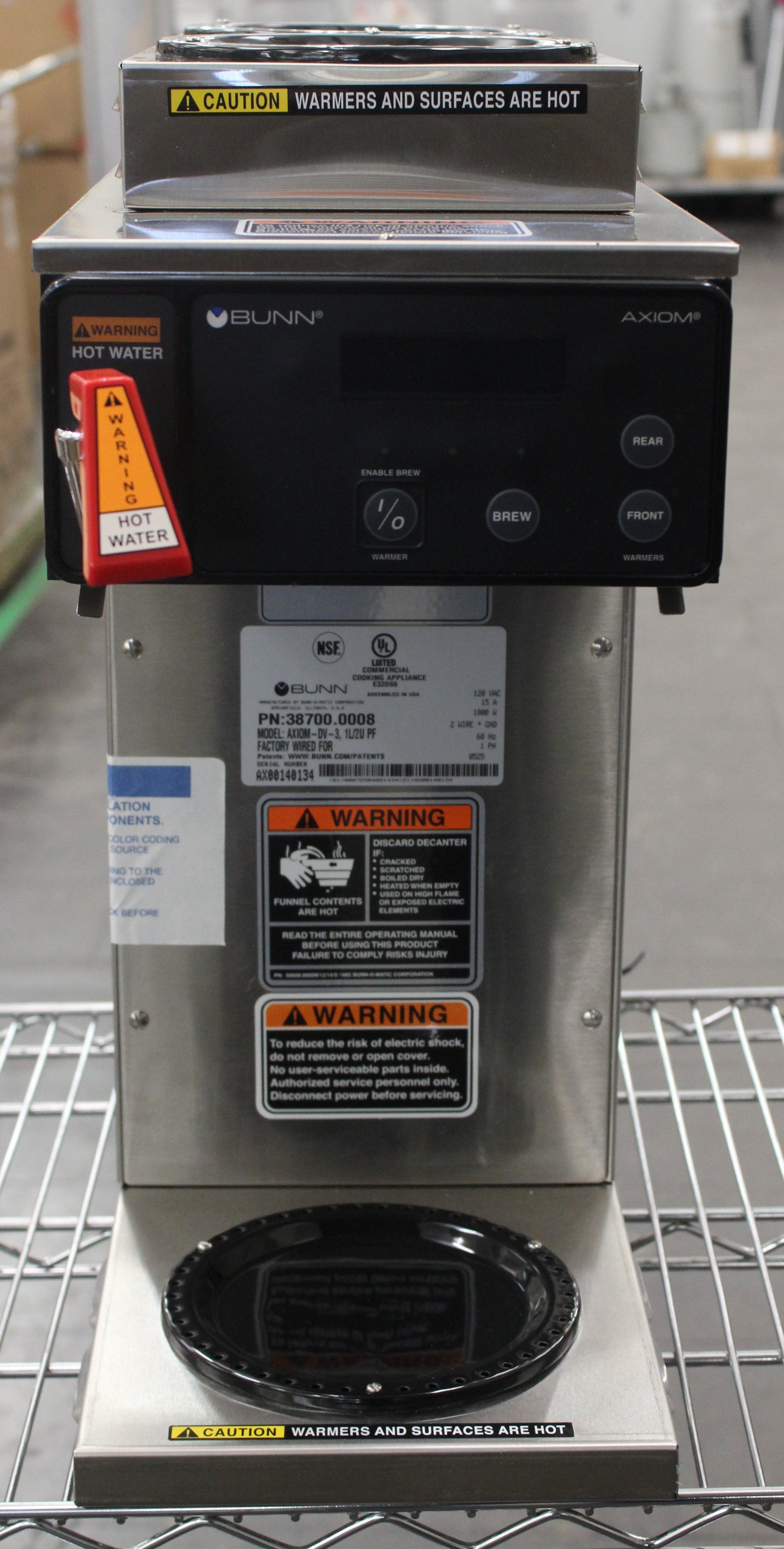 The Bunn 38700.0008 AXIOM-DV-3 Dual Voltage Coffee Brewer features a large 200 oz. capacity tank. This unit also features an LCD display and digital temperature readout. This unit offers a medium-volume brewing solution that features Digital Brewer Control for precise extraction control.