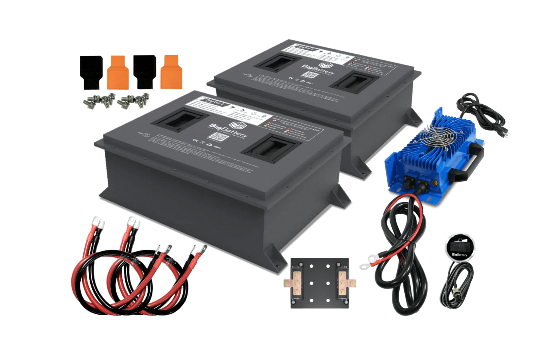 2ND GENERATION KITS ARE HERE! BigBattery’s all-new LiFePO4 7.68kWh 2x RAPTOR 2 Kit is a game-changer when it comes to powering your 36V golf carts, utility carts, and industrial equipment. Each RAPTOR 2 packs 3.84kWh of capacity in a highly durable, compact form factor, and this kit is guaranteed to significantly extend your range, boost your acceleration, and drastically reduce the total weight of your vehicle, allowing you to carry heavier loads with ease.