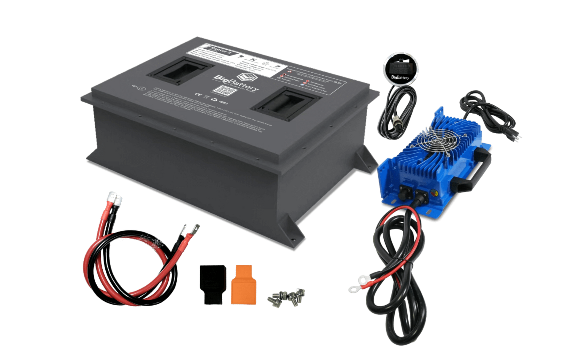 2ND GENERATION KITS ARE HERE! BigBattery’s all-new LiFePO4 RAPTOR 2 Kit is a game-changer when it comes to powering your 36V golf carts, utility carts, and industrial equipment. The RAPTOR 2 packs 3.84kWh of capacity in a highly durable, compact form factor, and is guaranteed to significantly extend your range, boost your acceleration, and drastically reduce the total weight of your vehicle, allowing you to carry heavier loads with ease.
