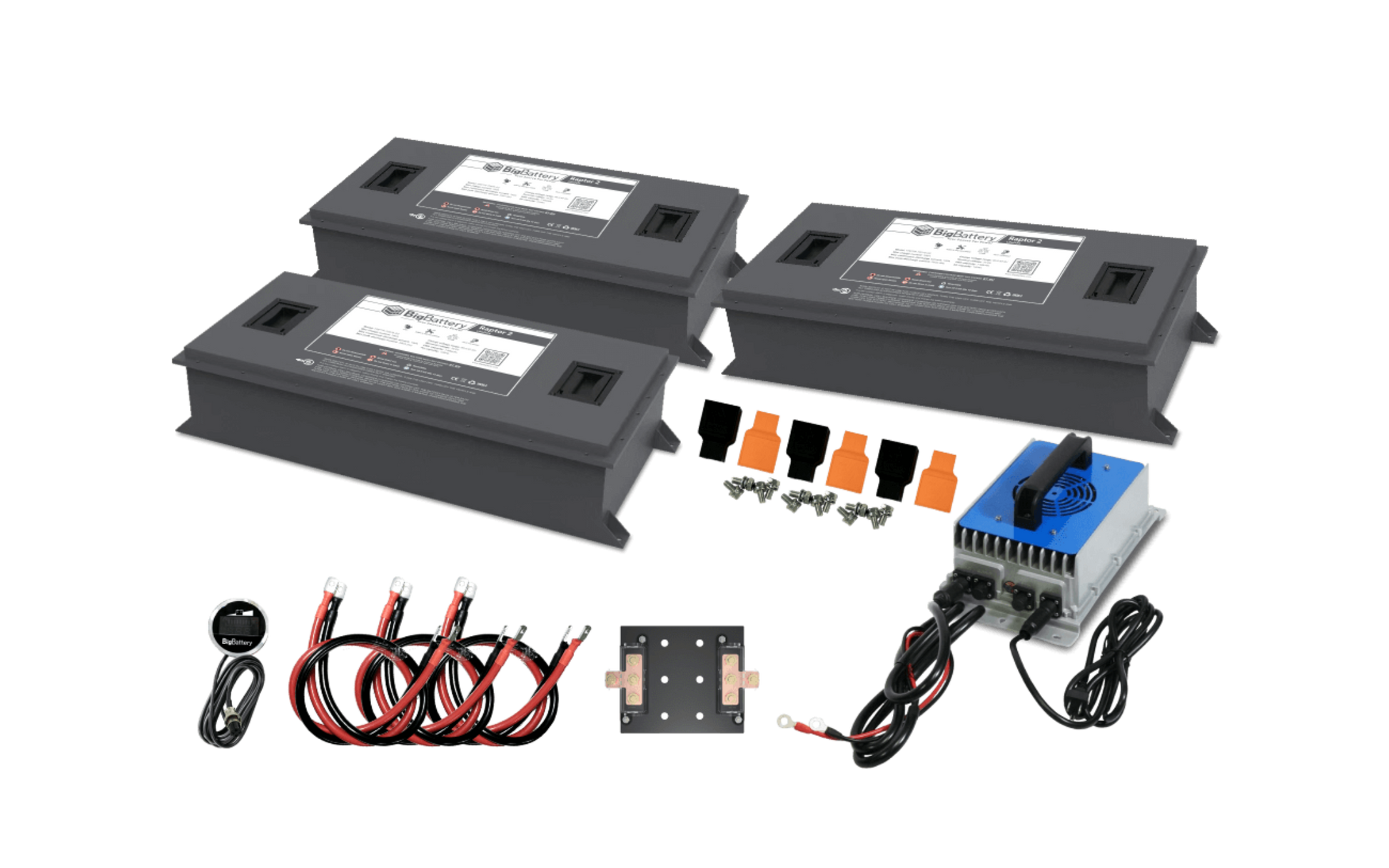 2ND GENERATION POWER IS HERE! This 23.04kWh kit includes (3) of our our all-new 72V LiFePO4 RAPTOR 2s with all the needed kit components included for an effortless installation. BigBattery’s state-of-the-art RAPTOR 2 is a game-changer when it comes to powering your high-voltage golf carts, transport vehicles, and industrial equipment, packing 7.68kWh of capacity in a highly durable, energy-dense form factor. Your kit includes your weatherproof charger, battery capacity meter, busbar, and terminal cables to get you up and running easily.