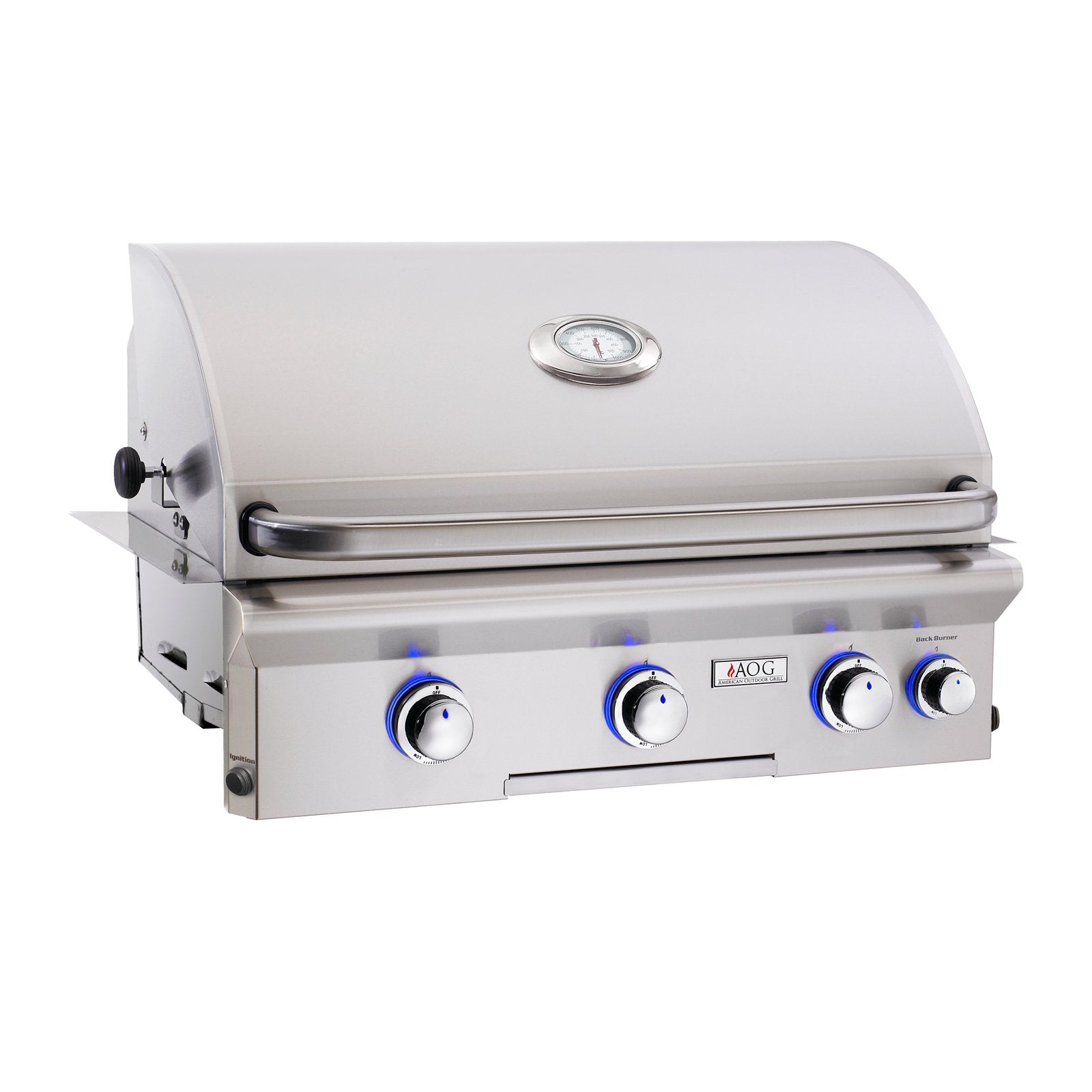 American Outdoor Grill Natural Gas 30-Inch L-Series 3-Burner Built-In Grill w/ Rotisserie Backburner and High Performance Rotisserie Kit - 30NBL