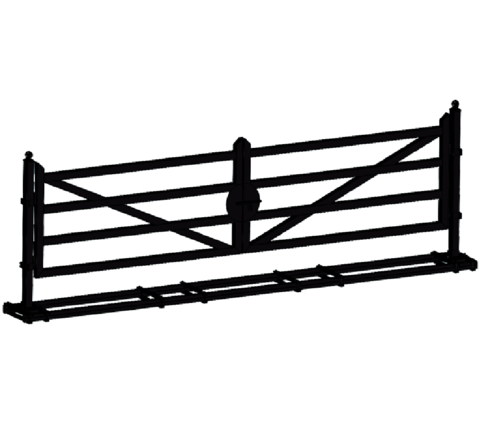 20ft farm metal driveway gate provides wide access for vehicles, equipment, or livestock.