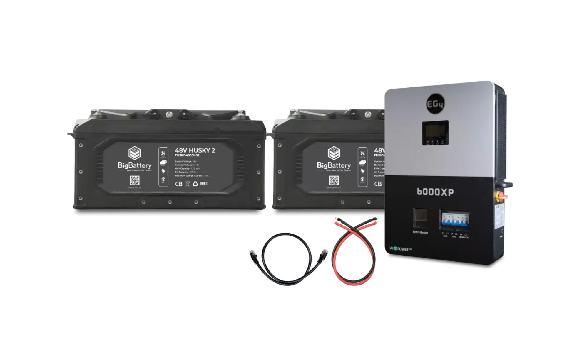 The HUSKY 2 comes with state-of-the-art features to enhance the safety and visibility of your power. Not only is it housed in an IP65-rated, vibration-resistant casing, and equipped with an advanced BMS capable of auto-balancing cells, but it also boasts a self-heating function which supports cold weather charging, ensuring you have reliable power through every season. Plus, the HUSKY 2 features full CANBus & RS485 communication protocols, and we pair these HUSKY 2s with a cutting-edge 6000W EG4 split-phase inverter, equipped with its own in-depth LCD display, so you can always stay up to date on the status and performance of your power. This multifunctional inverter and charger boasts advanced parallelability up to 96kW, built-in circuit breakers, smart load control, variable working modes, and an integrated UPS module, along with the ability to handle PV arrays of up to 8000W, making this unit the perfect companion for your HUSKY 2s.
