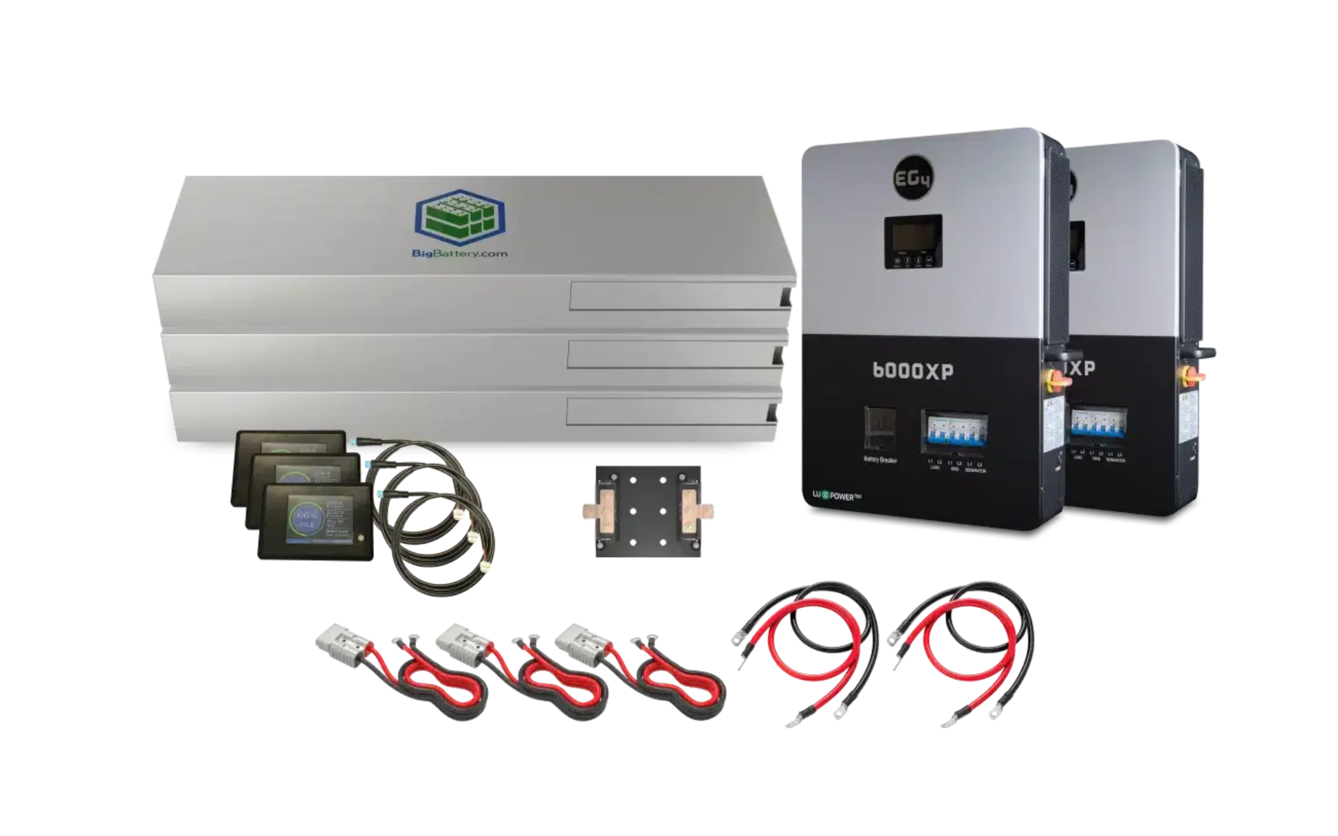 Plus, we pair these MUSTANGs with two cutting-edge 6000W EG4 split-phase inverters, equipped with their own in-depth LCD displays, so you can always stay up to date on the status and performance of your power. These multifunctional inverter-chargers boast advanced parallelability up to 96kW, built-in circuit breakers, smart load control, variable working modes, and integrated UPS modules, along with the ability to handle PV arrays of up to 8000W each, making these units the perfect companions to your 48V MUSTANGs.