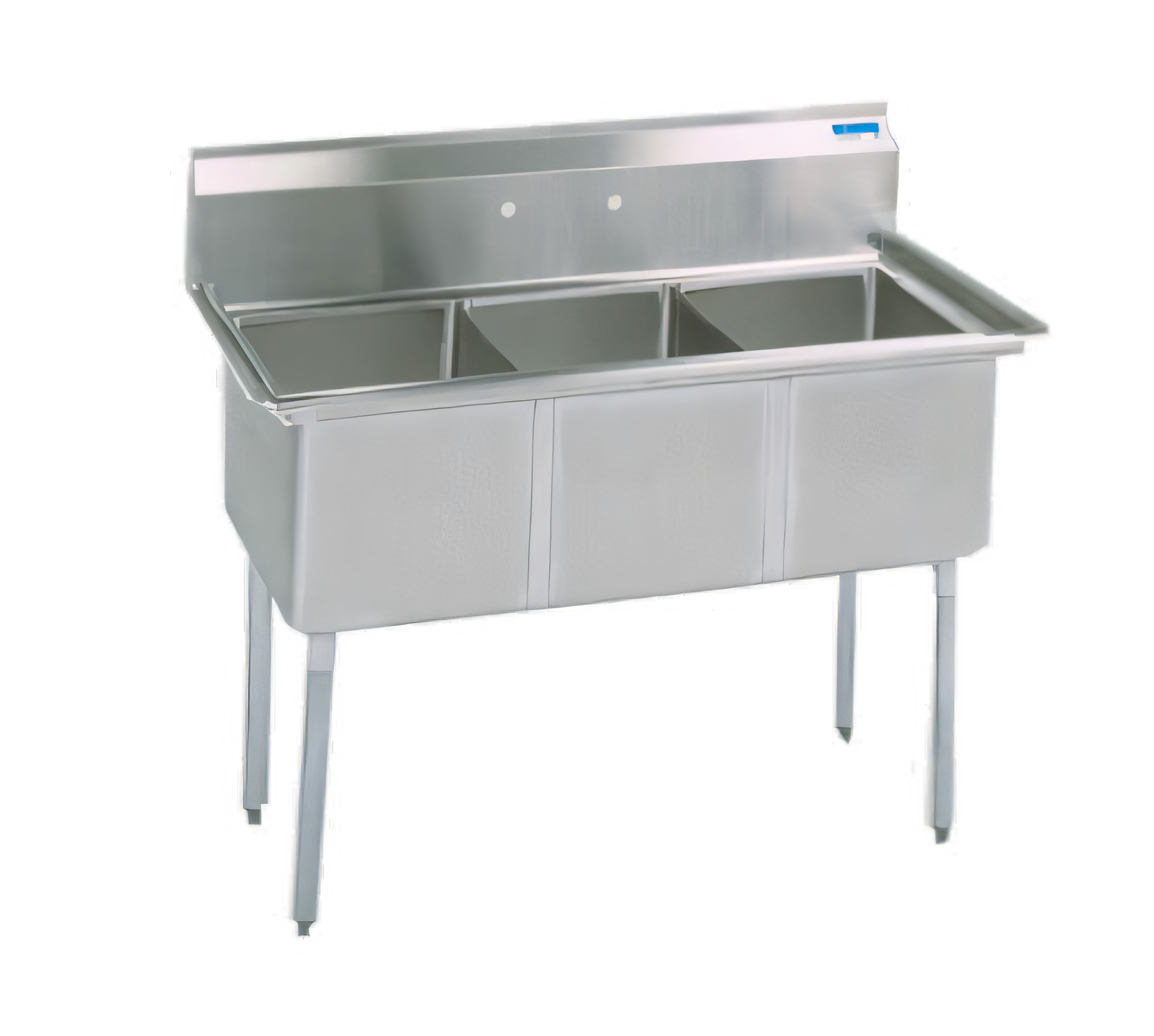 Engineered for demanding commercial kitchens, the BKS-3-18-12S packs three generous compartments, a high backsplash and rock-solid stainless construction into a space-saving 59-inch footprint—perfect for efficient wash, rinse and sanitize cycles.