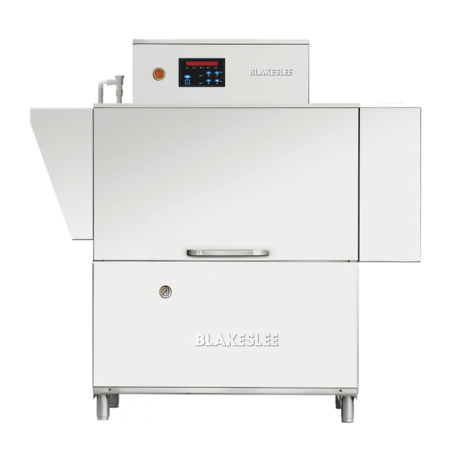 Blakeslee RC-64-3 DR69 conveyor dishwasher: 340racks/hr, double rinse, self-cleaning pump, 316 stainless tank, 75" conveyor, energy-efficient controls.