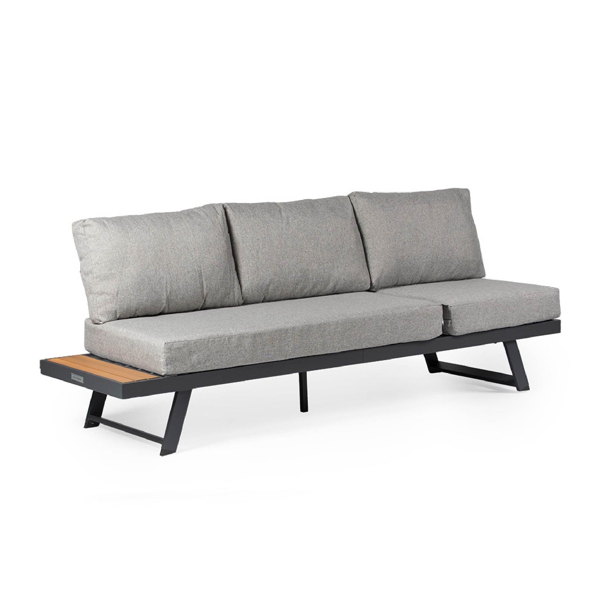 This modern luxury Sun Sofa can be placed in multiples or with its matching collection to create a custom outdoor oasis on your backyard, patio, poolside, or deck. The three-seater sofa is made from high-quality aluminum alloy, which makes it weather-resistant and durable. The powder-coated metal frame is lightweight and easy to move around, making it perfect for outdoor gatherings and events. This intricate sofa comes with grey cushions that provide extra comfort. The cushions are made from high-quality materials resistant to water and UV rays, ensuring they will last for a long time. The cushions are also removable, which makes them easy to clean and maintain. The sofa frame includes a side table surface perfect for snack trays and drinks. Modern and elegant, this accent daybed with weather-resistant cushions is ideal for small spaces and will contrast nicely with the sleek frame, creating a stylish look to complement any home décor. The Caspian Sun Sofa with Cushions and Side Table is a perfect addition to any outdoor living space, providing both comfort and style. Paired with the right pieces, like our  you can enhance your patio or garden area even further. These side tables offer a convenient surface for drinks, snacks, and decorative items, allowing you to create a functional and inviting atmosphere. With a variety of designs to choose from, our outdoor side tables complement the sleek lines of the Caspian Sun Sofa, making them an ideal choice for a cohesive outdoor décor. Elevate your outdoor experience today by combining the elegance of the Caspian Sun Sofa with our stylish side tables!