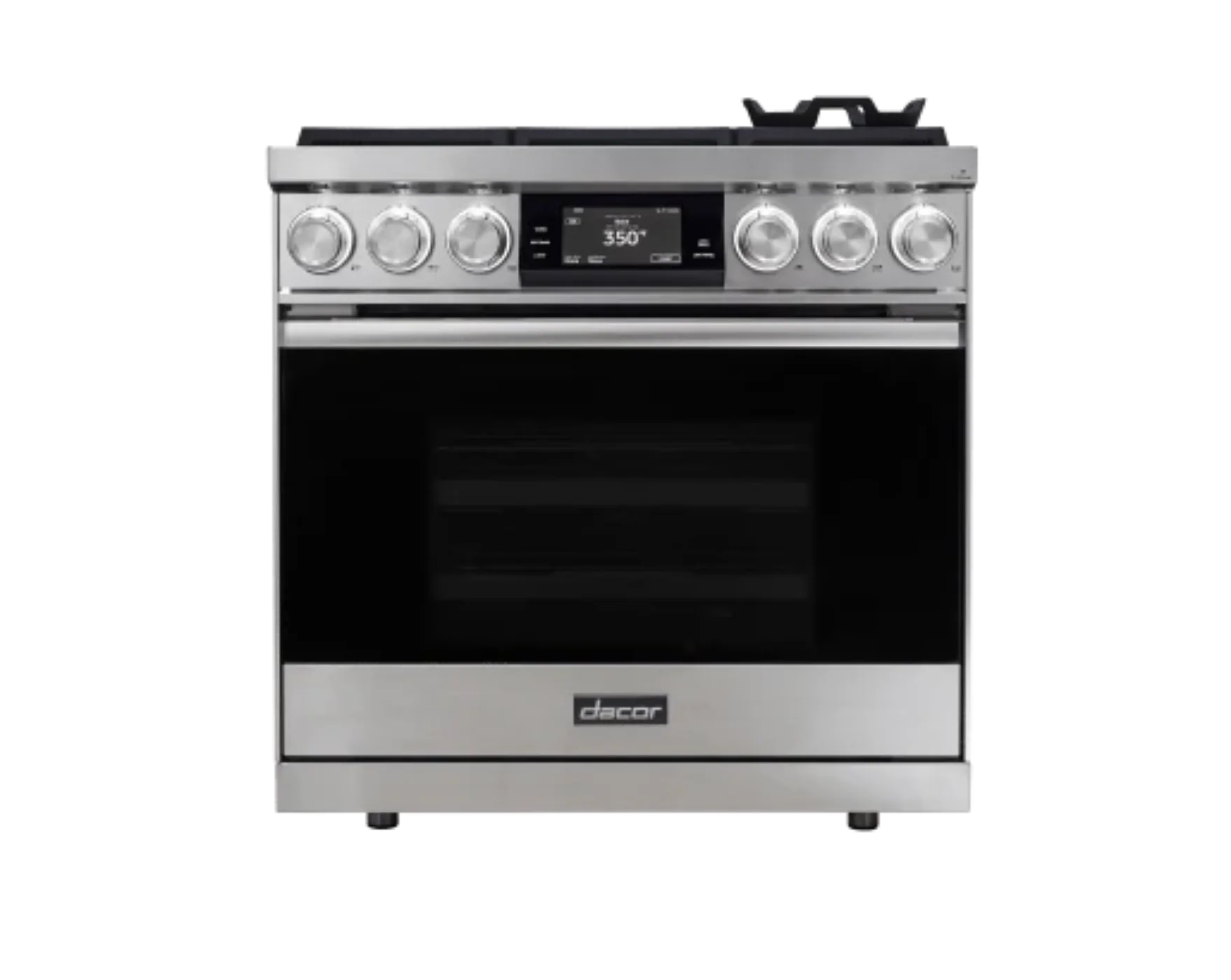 Dual Oven Chambers: 36-inch range with two cooking cavities allows multiple dishes to cook simultaneously.