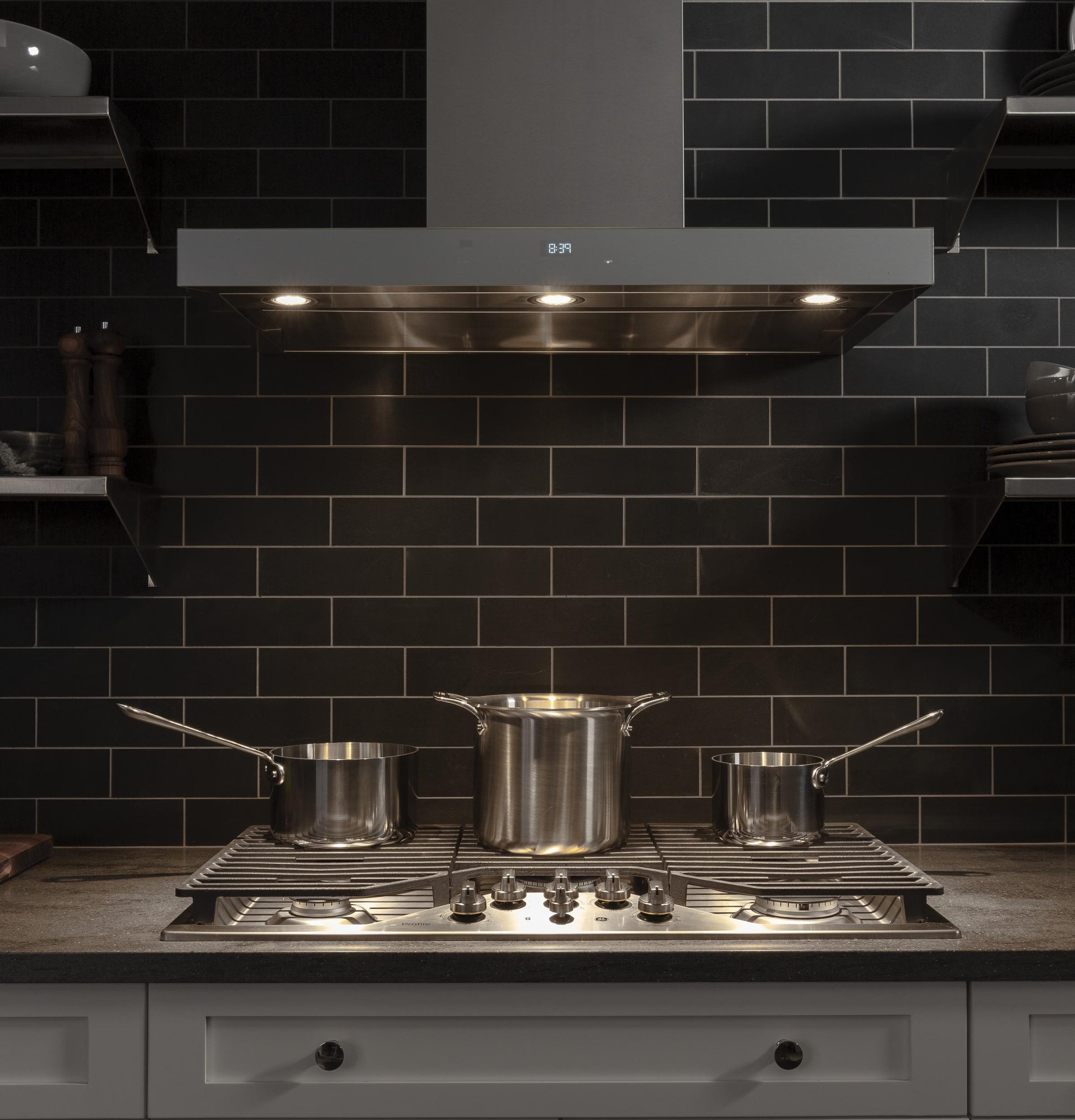 Stainless-steel finish, 36" width, and designer styling create a clean, professional look that integrates seamlessly into modern kitchens.