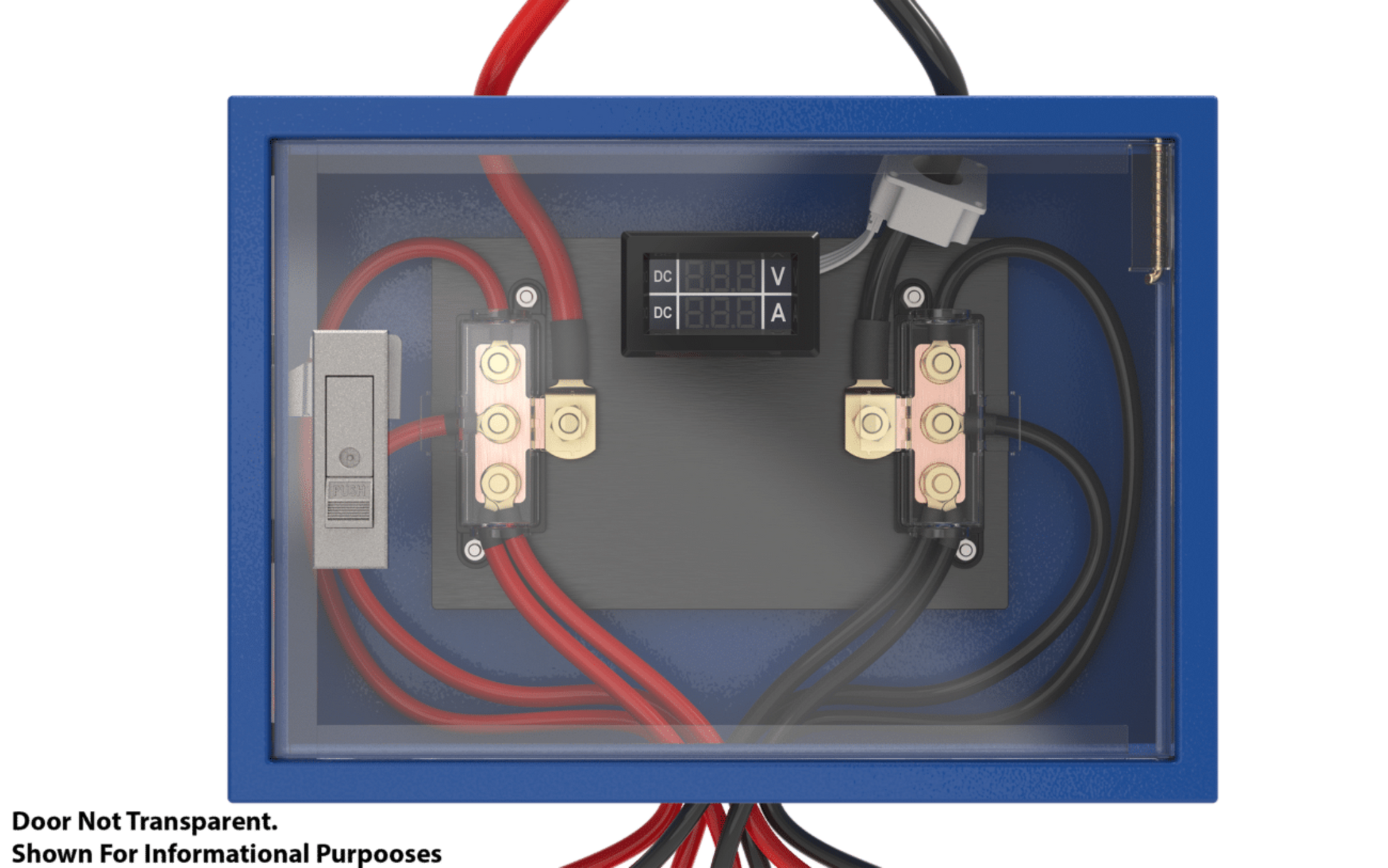 EASY CONNECTIONS! Our proprietary BigBattery Parallel Box is the perfect solution for your power system’s cable management. The Parallel Box comes with a 1000A busbar that supports 4 BB175 (36 in – AWG 6) cable connections – upgradeable to 8 – with a BB350 (18 in – AWG 2) cable for connecting to the rest of your power system. Our powder-coated steel Parallel Box is equipped with a Dual Volt and Amp Meter on the front as well as push button hinge for easy access. Stay organized and stay powered with the BigBattery Parallel Box.