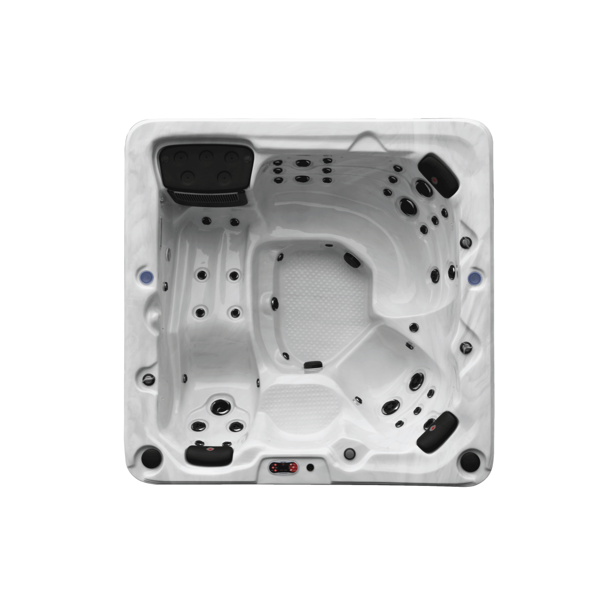 - Multi-level seating including a full-length, no-float lounger and a deep captains chair you can fully submerge your shoulders in
