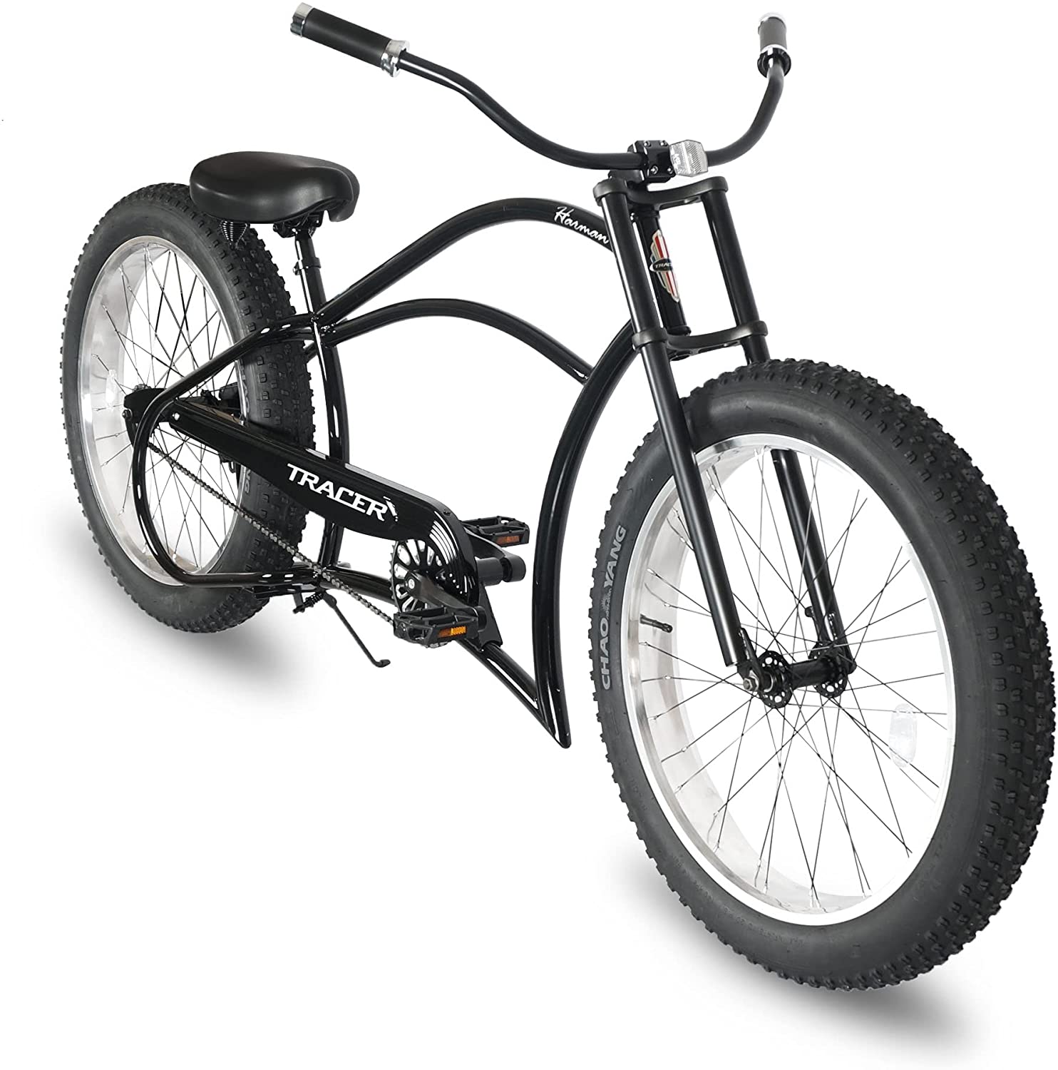 The Tracer Harman 26'' Classic Chopper Stretch Cruiser Fat Tire Bike Single Speed is a unique and stylish bicycle that brings together the essence of classic chopper design with modern features for an extraordinary riding experience. This cruiser bike not only turns heads with its distinctive looks but also offers a comfortable and enjoyable ride. Here are some key features that make the Tracer Harman stand out:
