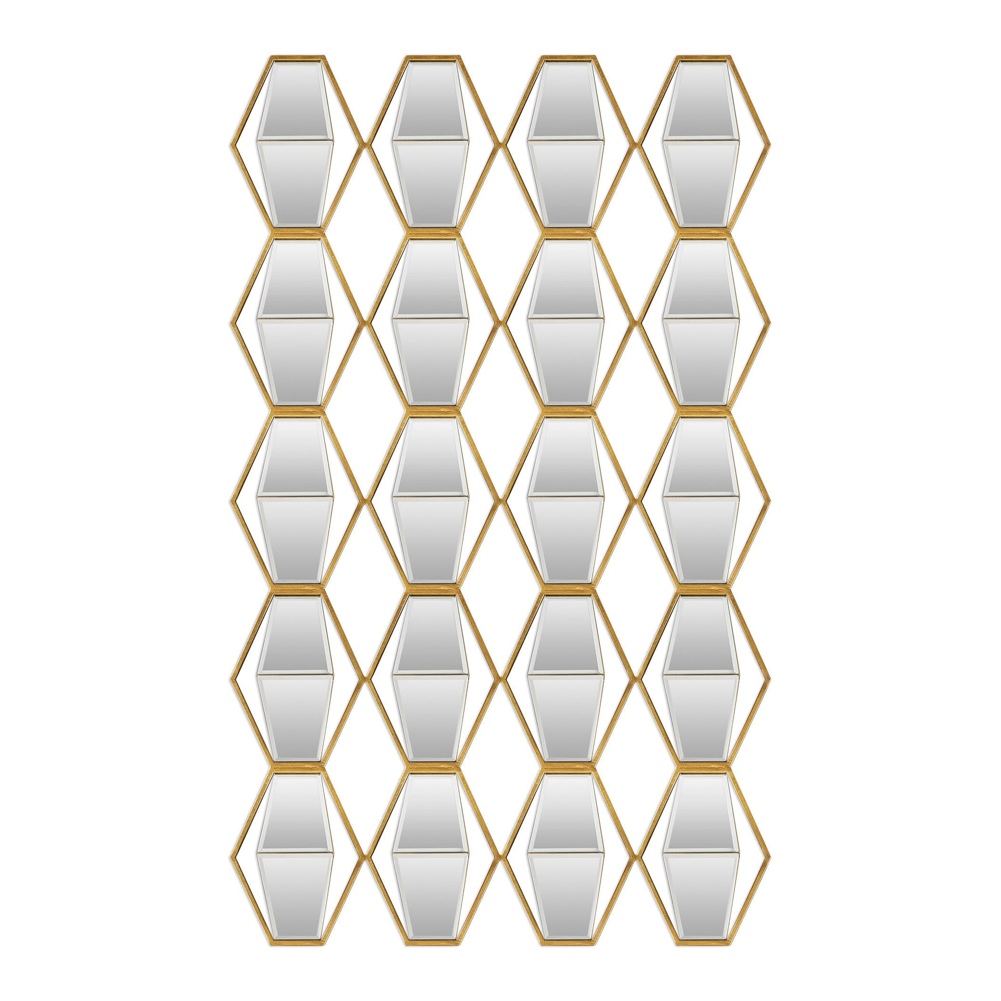 Delicate iron frame in metallic gold leaf that showcases suspended beveled mirrors in a 3D angled profile. Hang horizontally or vertically. Uttermost Alternative Wall Decor combines quality materials and high-style design, plus engineered packaging to reduce damage rates. Each product is designed and packaged for shipping.