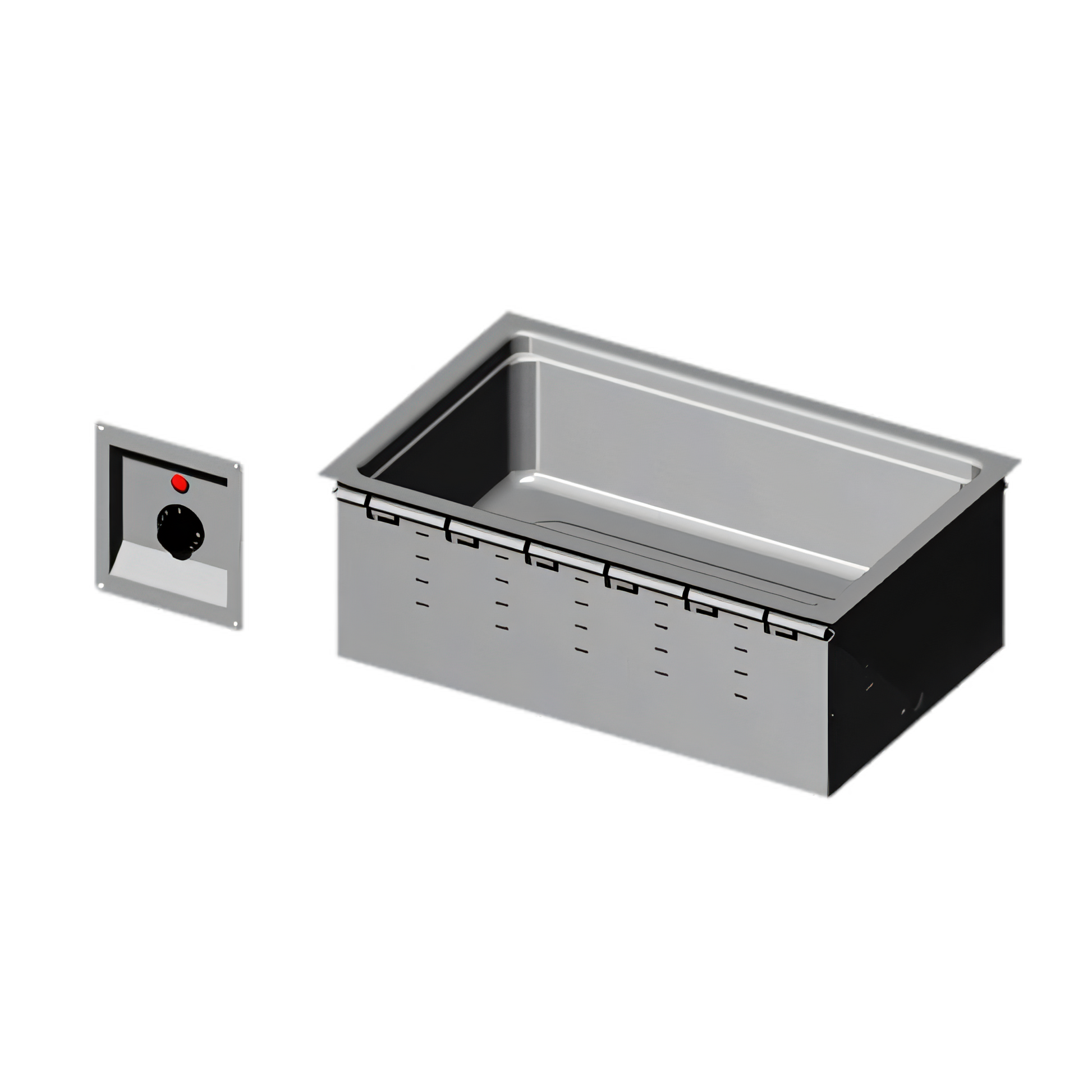 Vollrath electric drop-in steam table well: insulated 72" thermostatic control, stainless interior, 1/2" drain, NSF/cULus, 120V, USA-made.